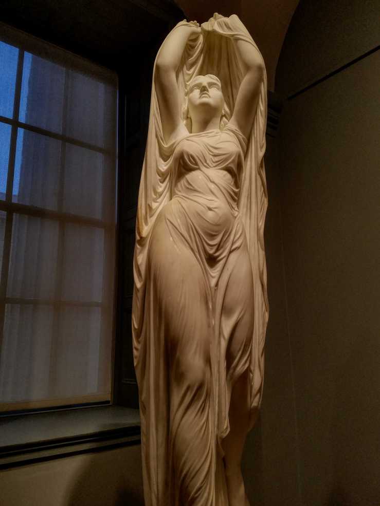 Sargent has portrayed her in the elegant interior of his London studios decorated with two paintings that frame the circumstances of Elizabeth’s life: a Madonna and Child, and a figure of an old woman copied from a portrait by Frans Hals. Perhaps the artist wished to show Elizabeth as a woman who, despite early hardships, was neither maiden nor matron. Sargent was often dismissed by his contemporaries as a ”society portraitist”, but his paintings never fail tot convey the human story behind the image.