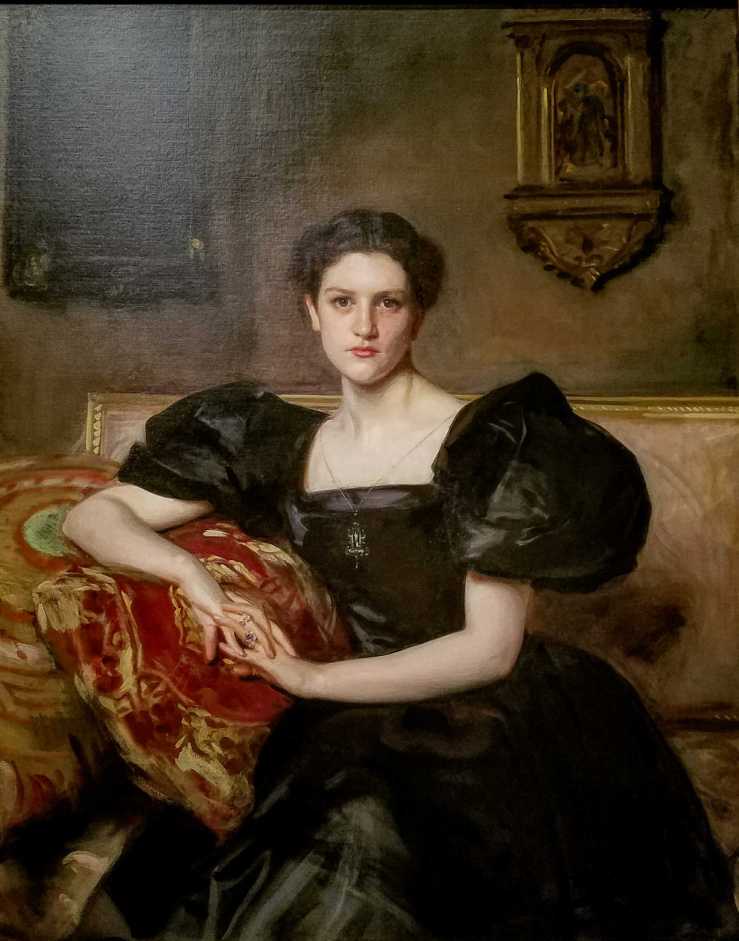According to the artist, twenty-six-year-old Elizabeth Chanler had ”the face of the Madonna and the eyes of a child.” This portrait shows a beautiful, well-bred woman who has learned to be strong. When Elizabeth was still a girl, her mother died, leaving her to help care for seven younger brothers and sisters.