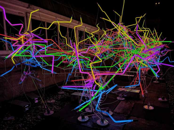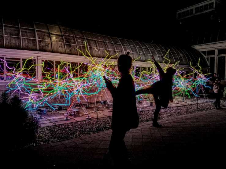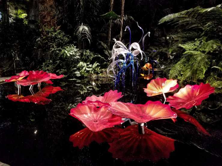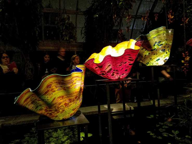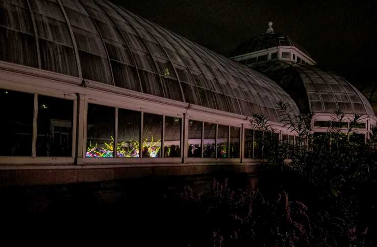 Of all the glass sculptures in this exhibition, Neon 206 stands out as the craziest. Installed specifically to reflect on the Conservatory windows and the pool outside, it must be seen in the dark or else it would look just like a bundle of bent tubes (which is what it is). But at night it transforms into an explosion of light, the perfect backdrop for those playful shadowy portraits; snapshots of electric dreams.