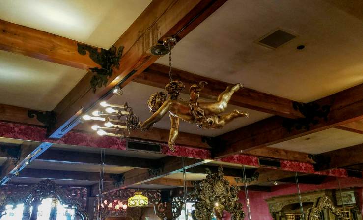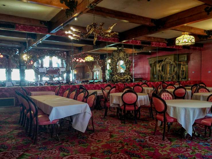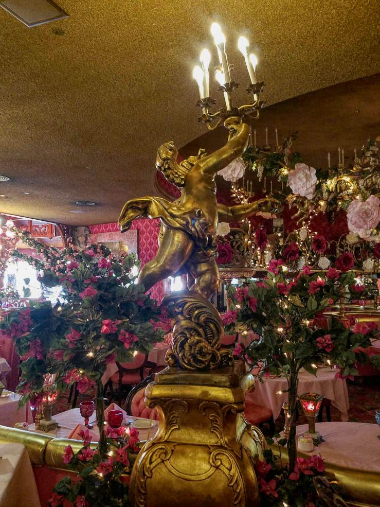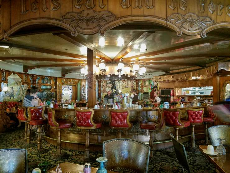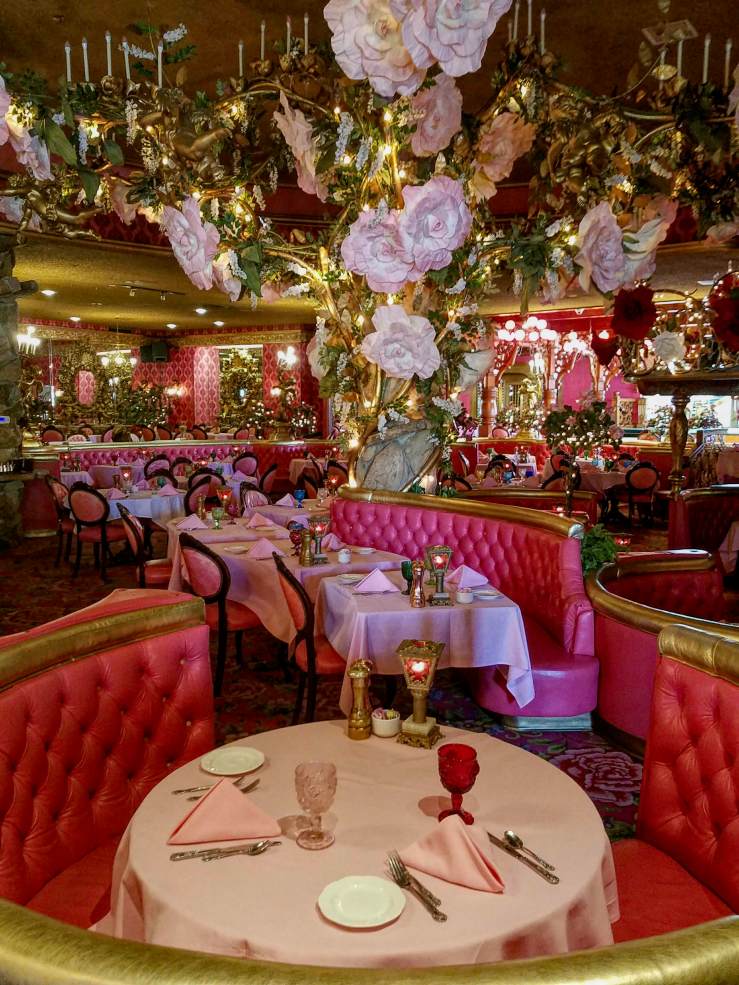 Driving south from San Simeon on CA-1 and then US-101, your way will inevitably bring you to another castle of opulence. The High Temple of Kitsch, a Symphony in Pink by the Brass Ensemble, the legendary Madonna Inn. From ”roses are red” to ”think pink” to ”red or dead”, every banality you’ve ever heard or thought of, will come to mind and take on a new meaning. This place has to be seen to be believed – from its Alpine Swiss hotel exterior down to the lavishly decorated restrooms, everything dressed in all shades of pink, with brass accents breaking the ”monotony”. Seeing ”la vie en rose” has never been easier, no rose-coloured glasses necessary. And that is only the ground floor; you haven’t even seen the rooms yet!
