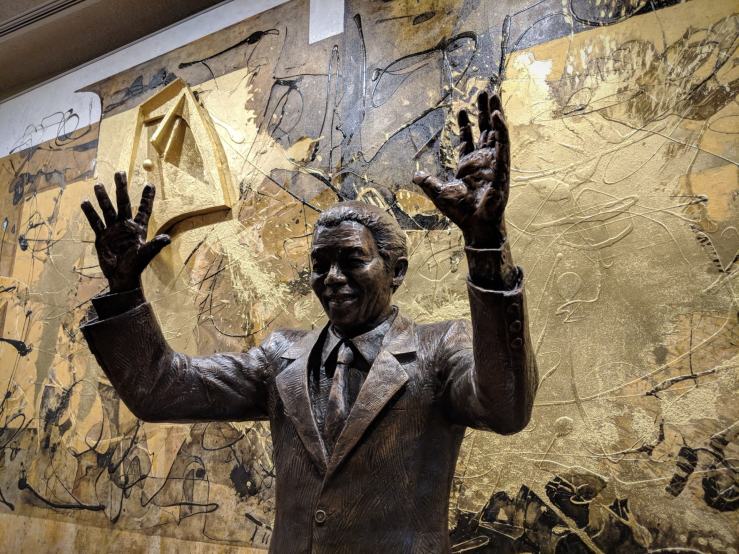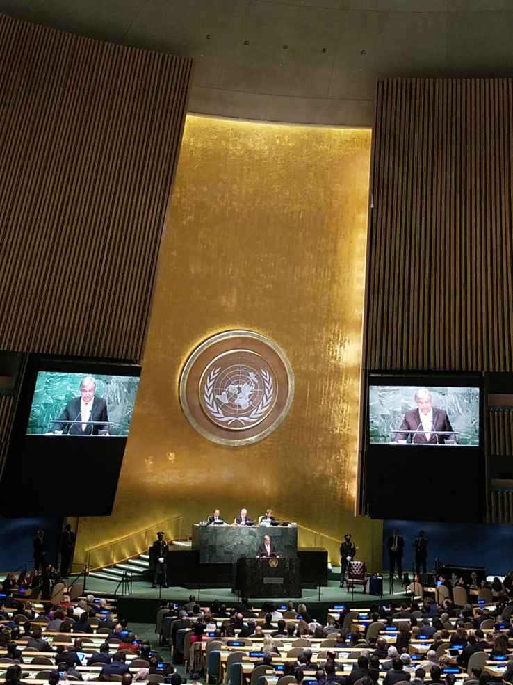 “Kusikawsay” means “peaceful and happy life” in the Quechua language. The sculpture, a gift of Colombia, is made of seven tonnes of melted ammunition surrendered by the Revolutionary Armed Forces of Colombia (FARC-EP) as part of the peace agreement with the government in 2016. Made by Chilean artist Mario Opazo, it represents an indigenous canoe that comes out of the ground like a projectile.
