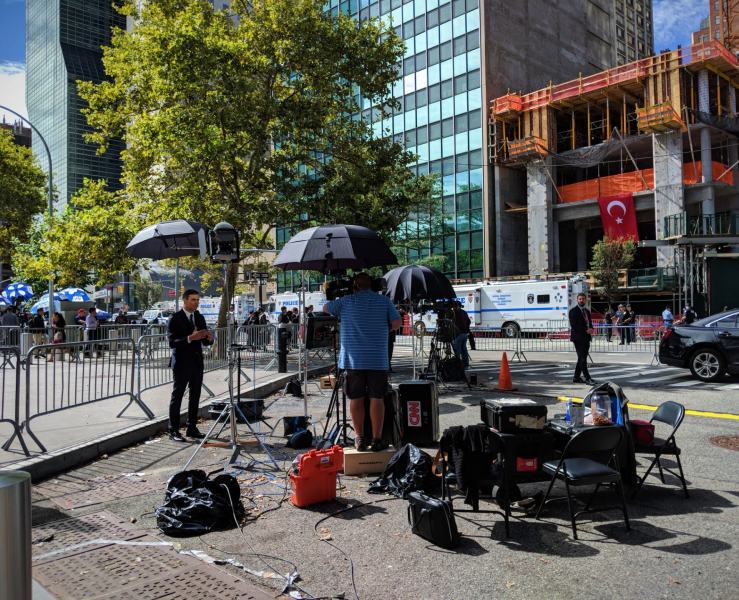 Created by the Russian painter and sculptor, Zurab Tsereteli, the sculpture commemorates the 1987 signing of the Treaty on the Elimination of Intermediate – Range and Shorter – Range Nuclear Missiles (INF Treaty), and is in celebration of the 45 Session of the General Assembly. Created as a monument to peace, the sculpture is composed of parts of actual United States and Soviet missiles. The work depicts an allegorical St. George, one arm raised, as he drives a lance through a double headed dragon.