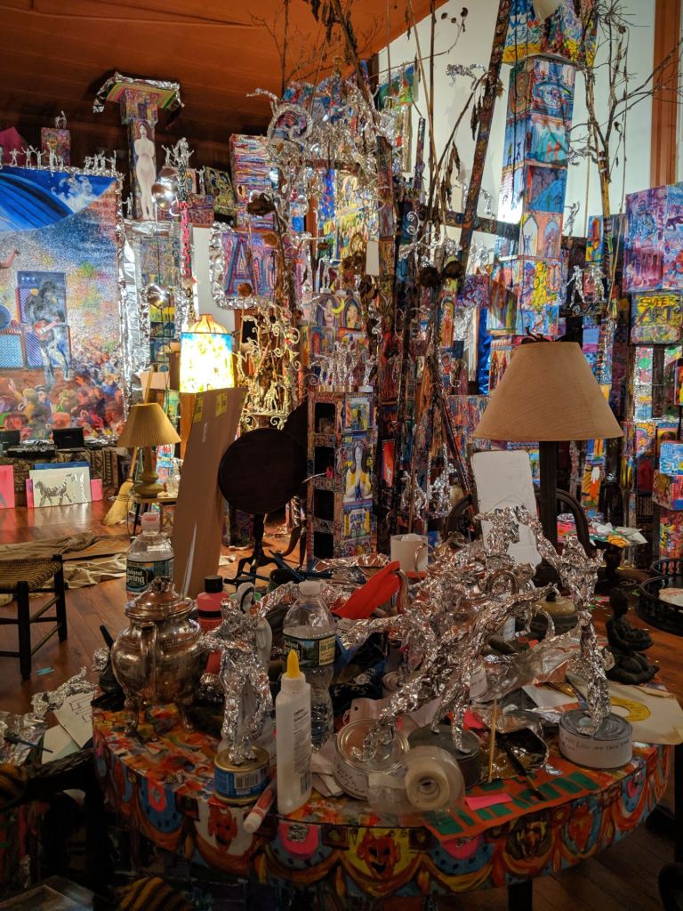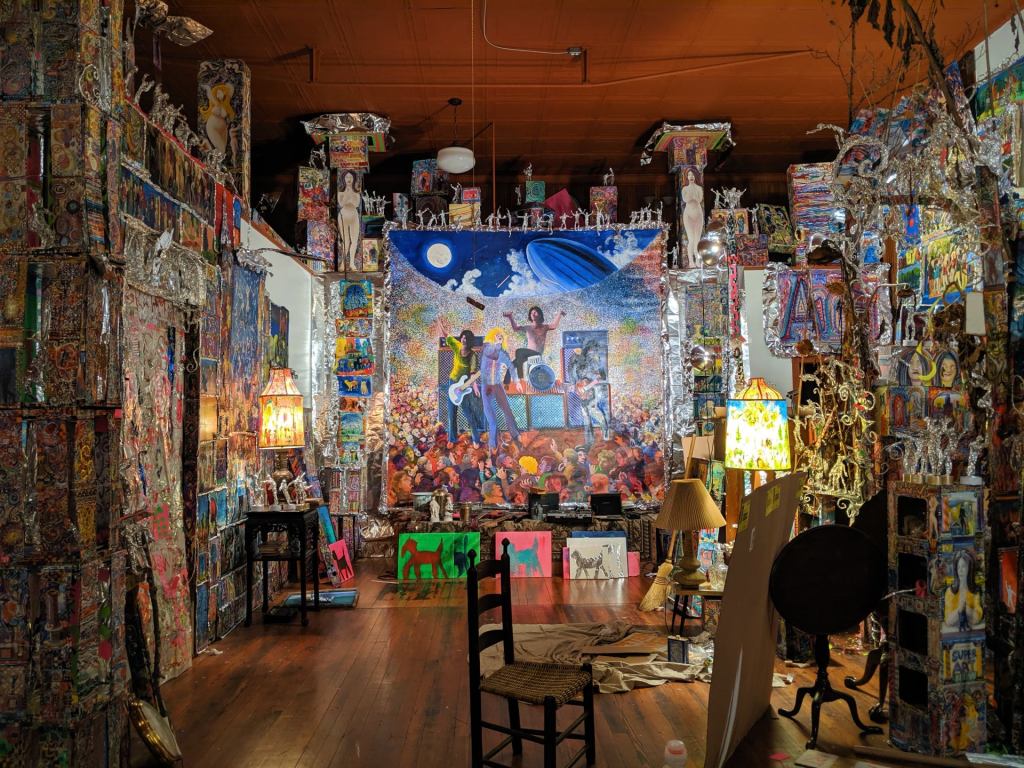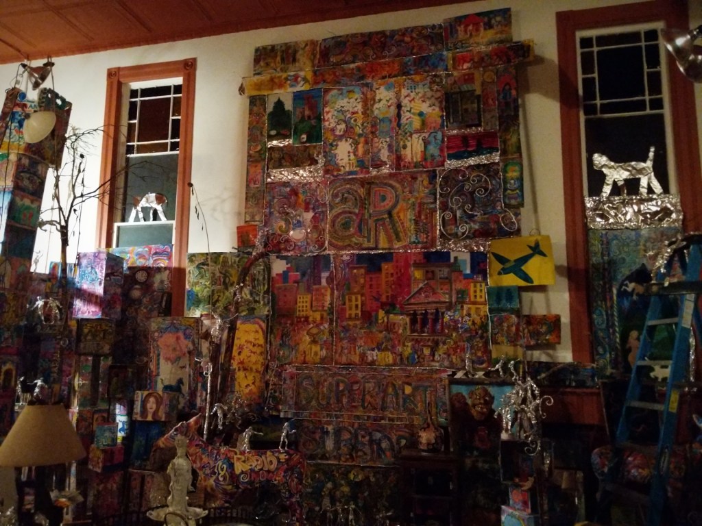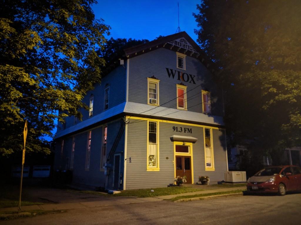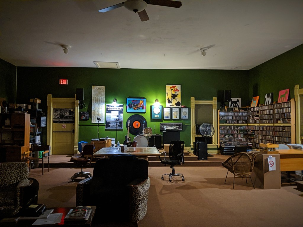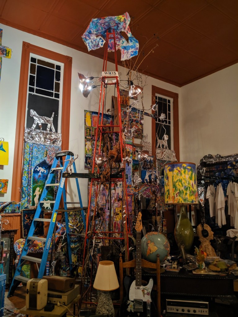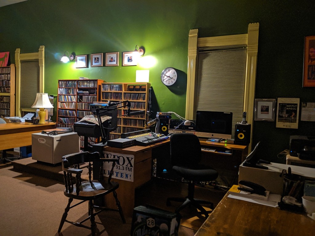On the ground floor of the WIOX 91.3 FM, a community radio station that is entirely supported and run by local talent. We are forever thankful to the man who, seeing us peering through the windows, opened up the doors and gave us a tour of his work space & art, took us upstairs to the radio floor, and allowed us to take photos.