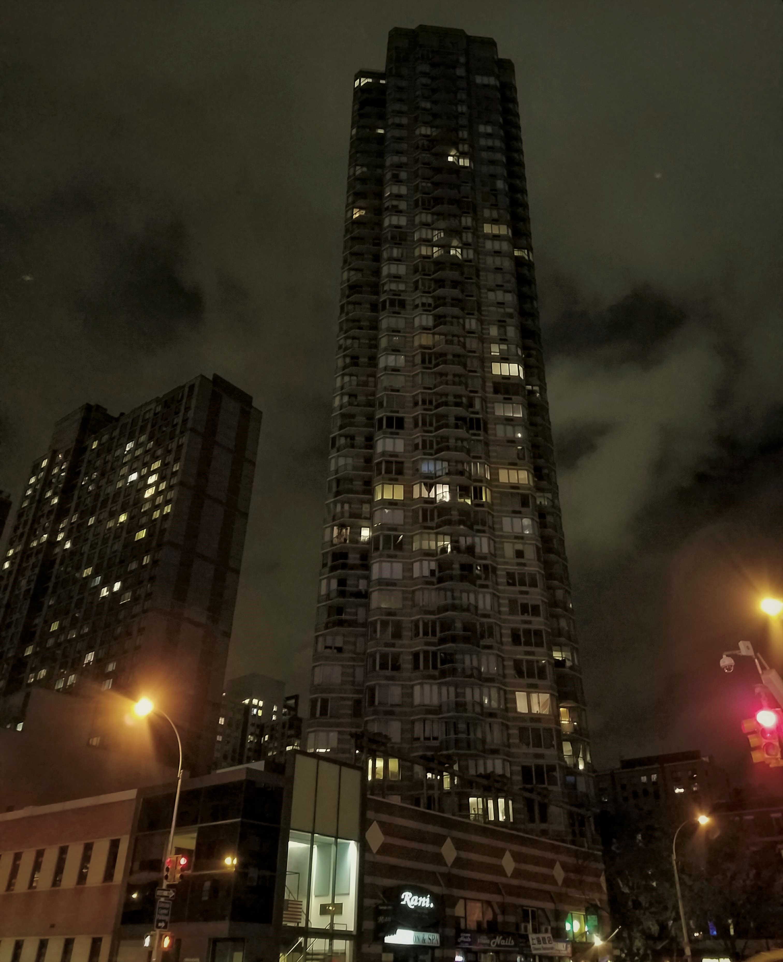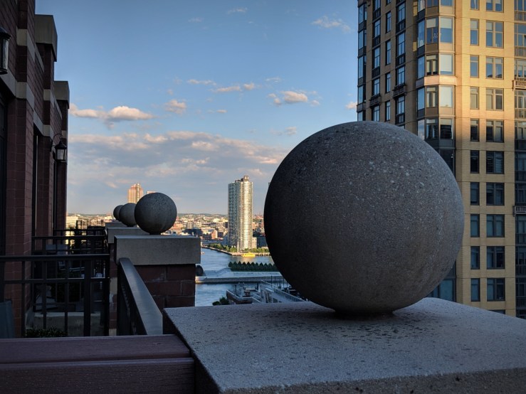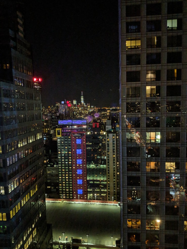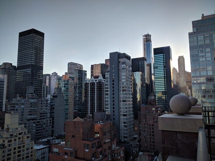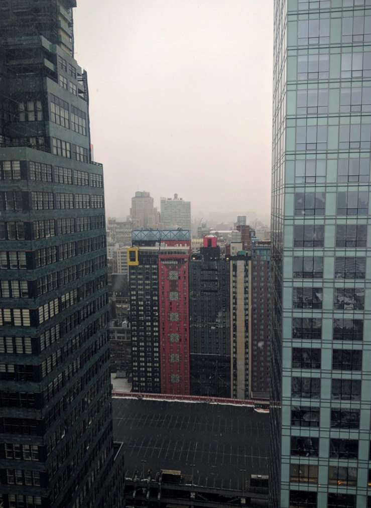 I’m not talking about me, oh no, even though with this view I often feel like a princess in her tower. It’s that rooftop looking down between the buildings that looks like a public parking but is usually empty, save for a car or two. It’s not often one can find an empty spot of this size in the heart of Manhattan, where every available inch is too valuable to be left unused.