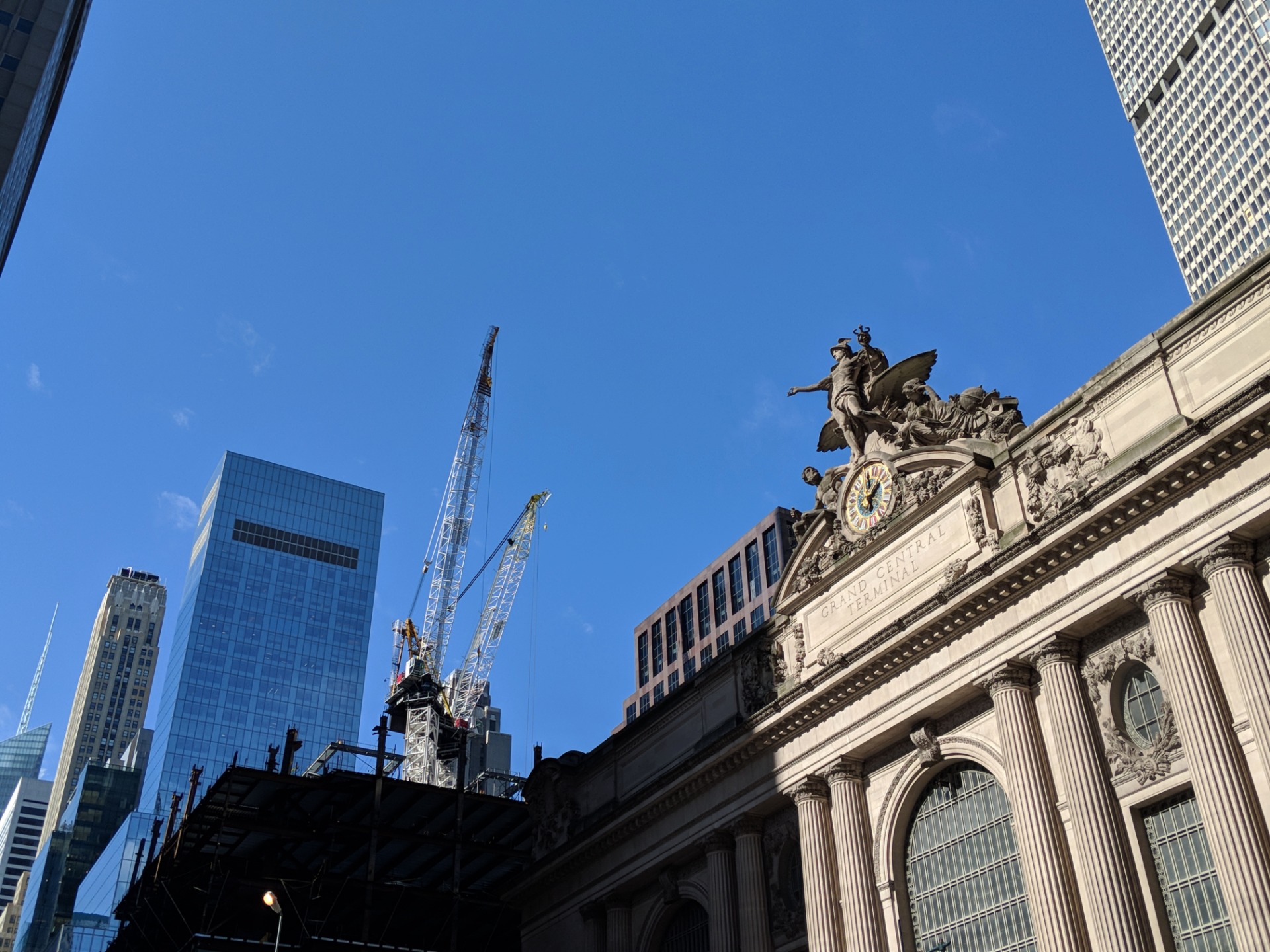 Hello, my name is Mercurius and I will be your guide for this tour. Later on, we will explore the secrets of the Grand Central Terminal but, for now, please enjoy the wonderful blue sky above this construction site on my right, because, my dear mortals, in time, a glass metallic giant will rise bound to obstruct your view…