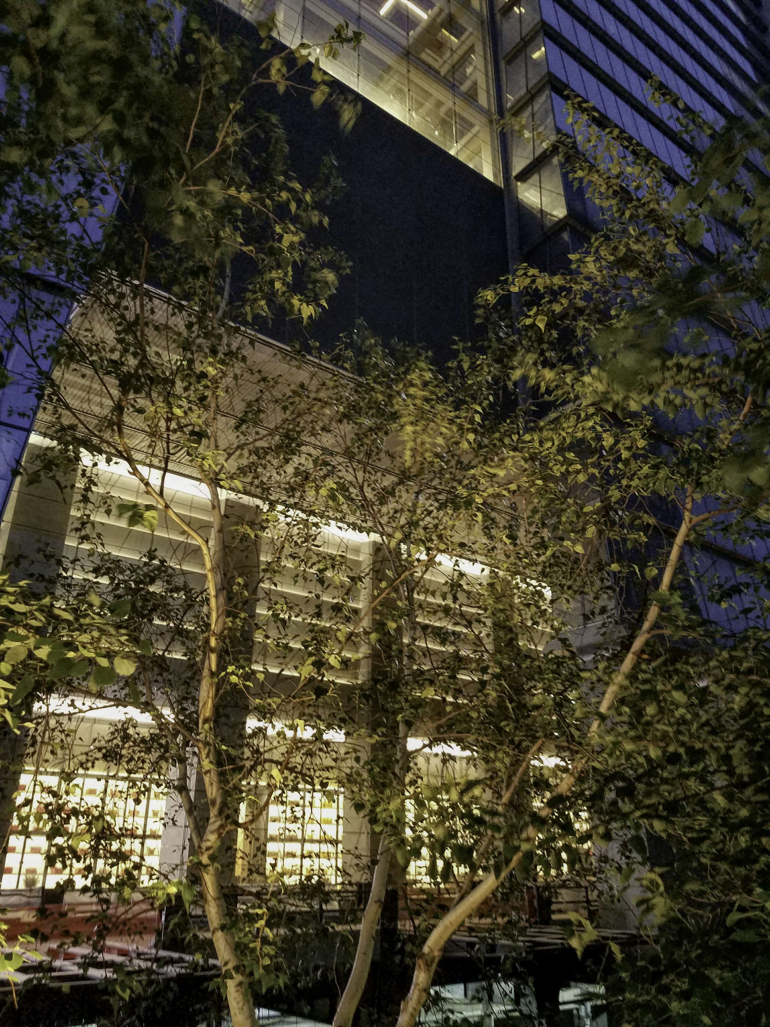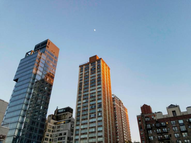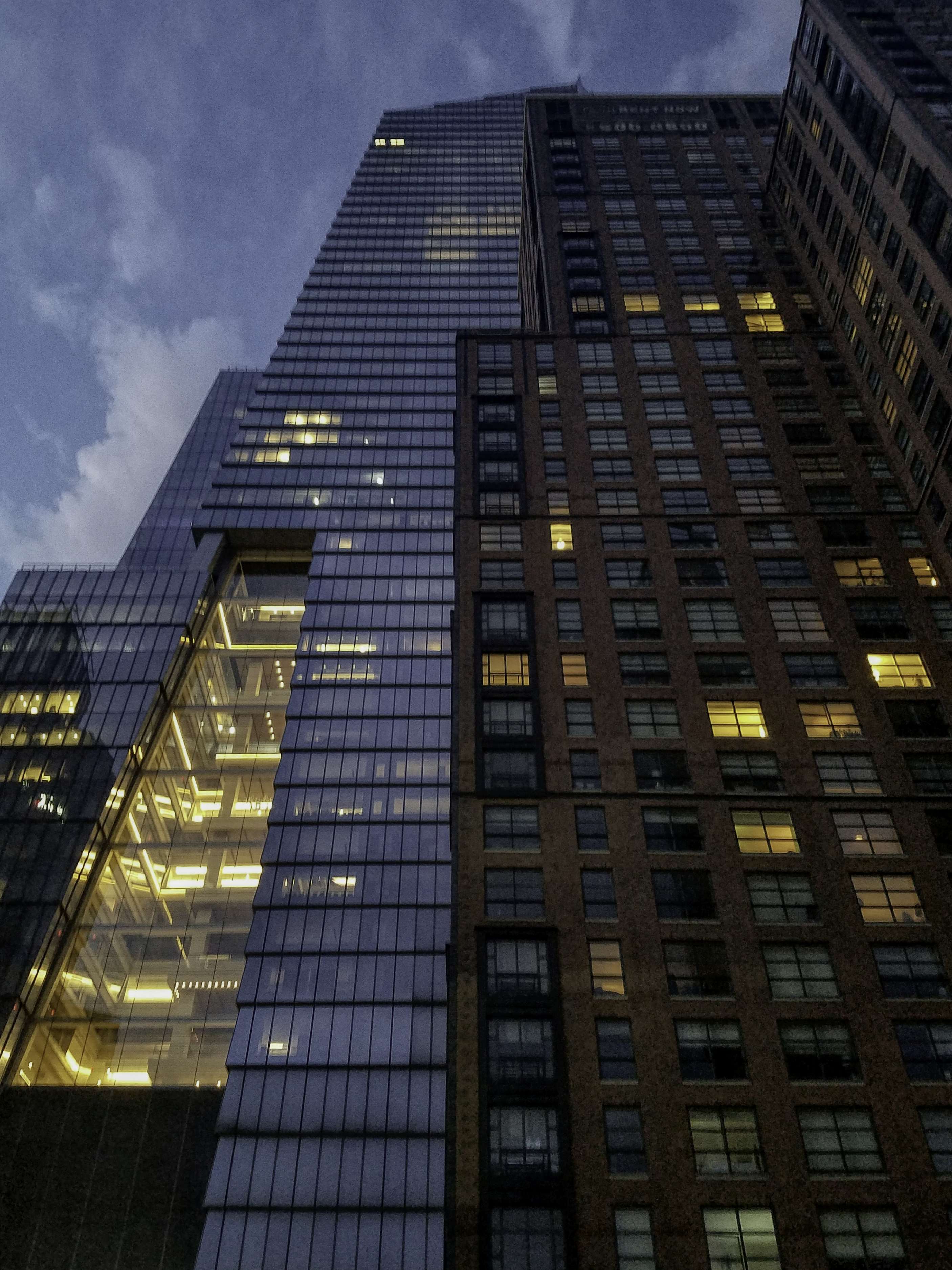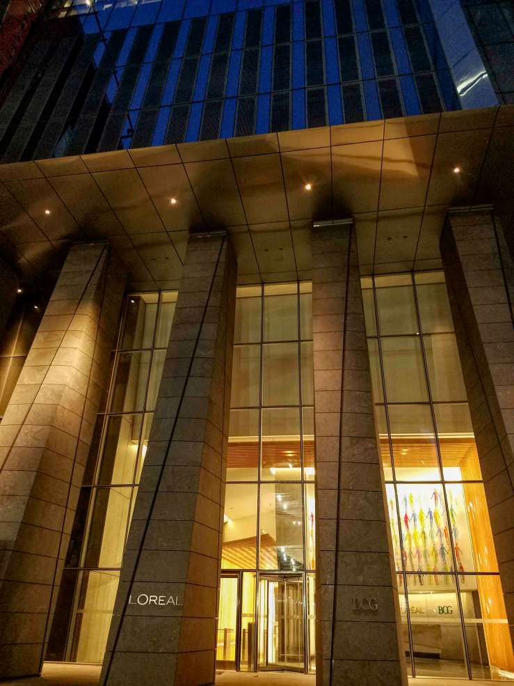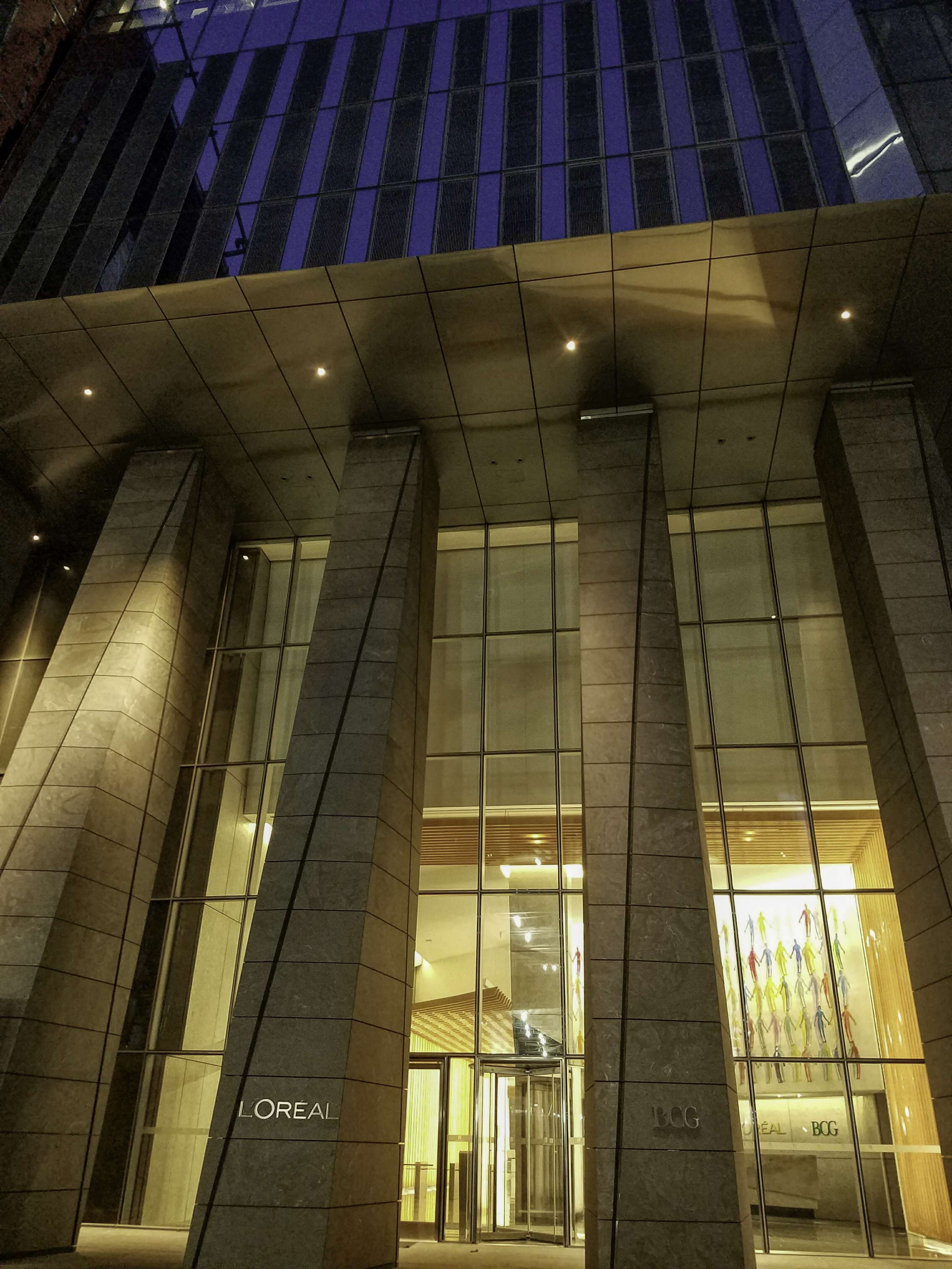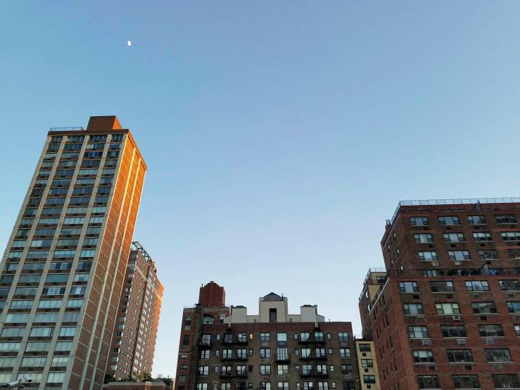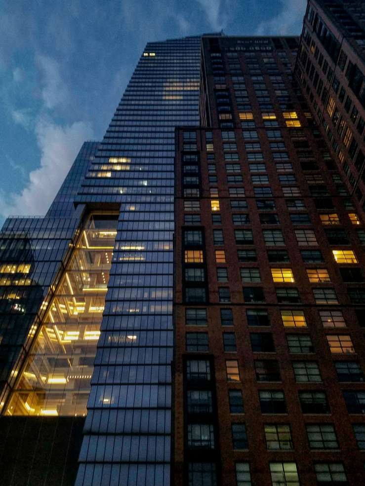 The red brick of Charles Scribner’s Sons building is bathed in a warm blood orange colour.