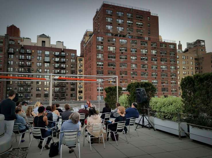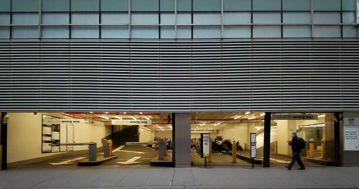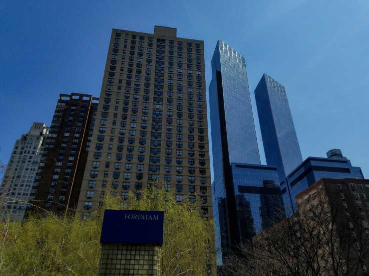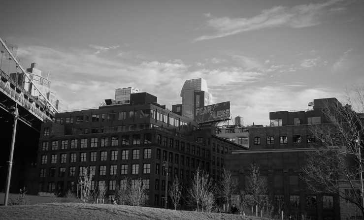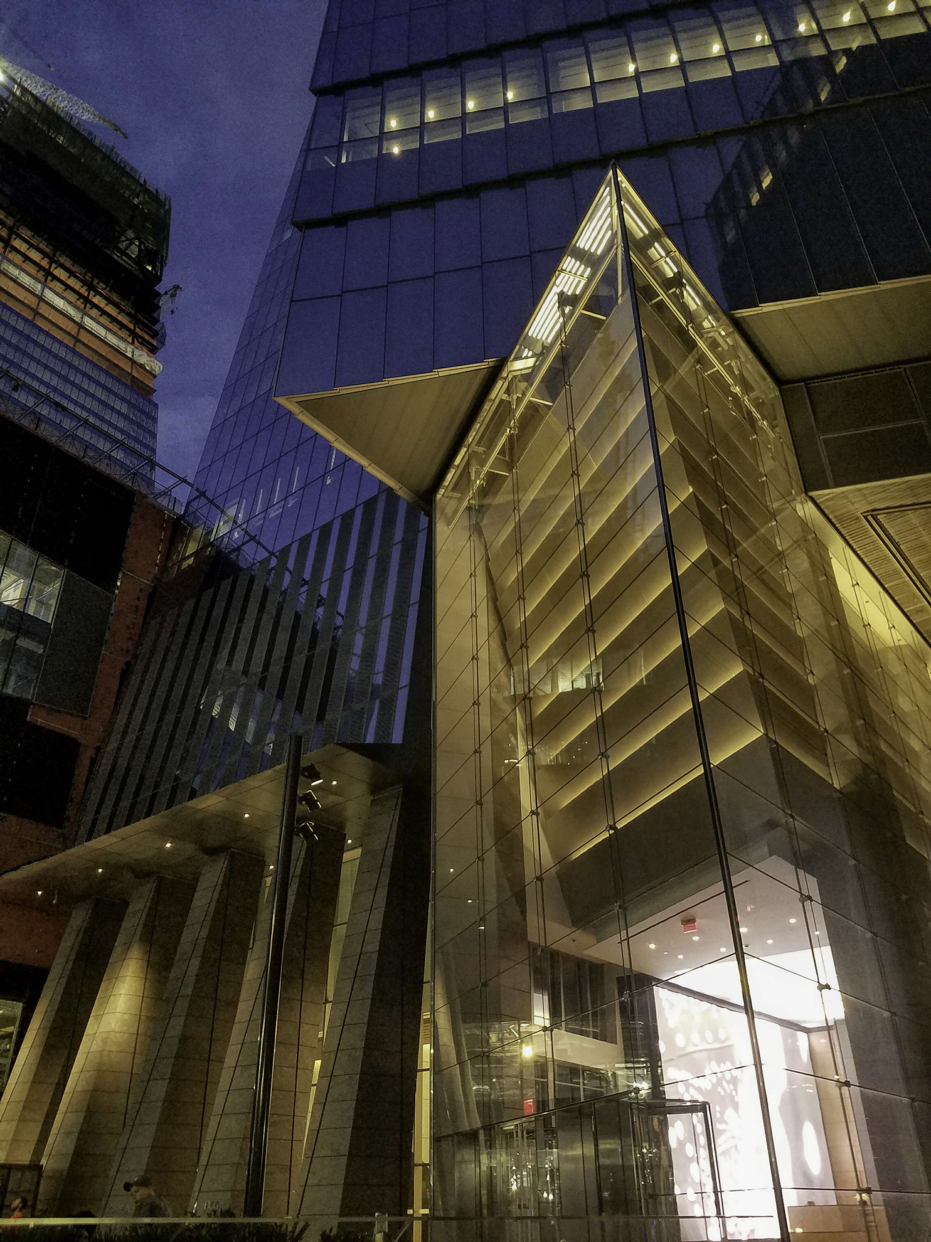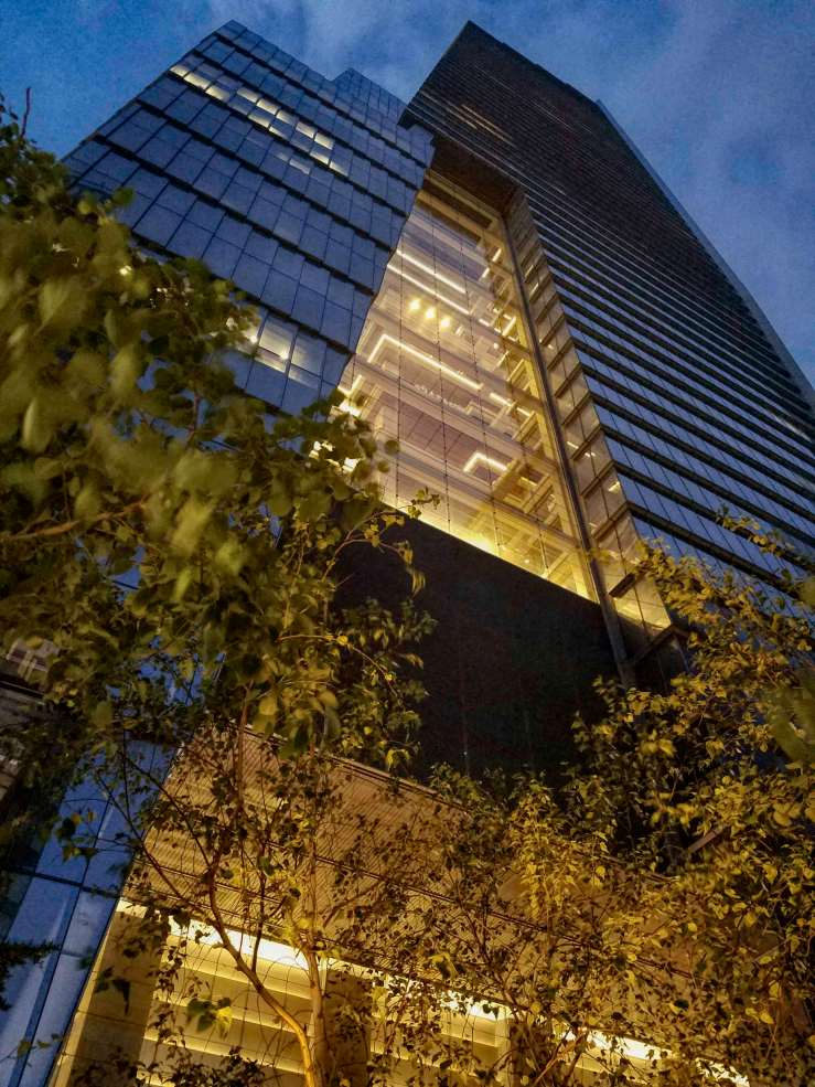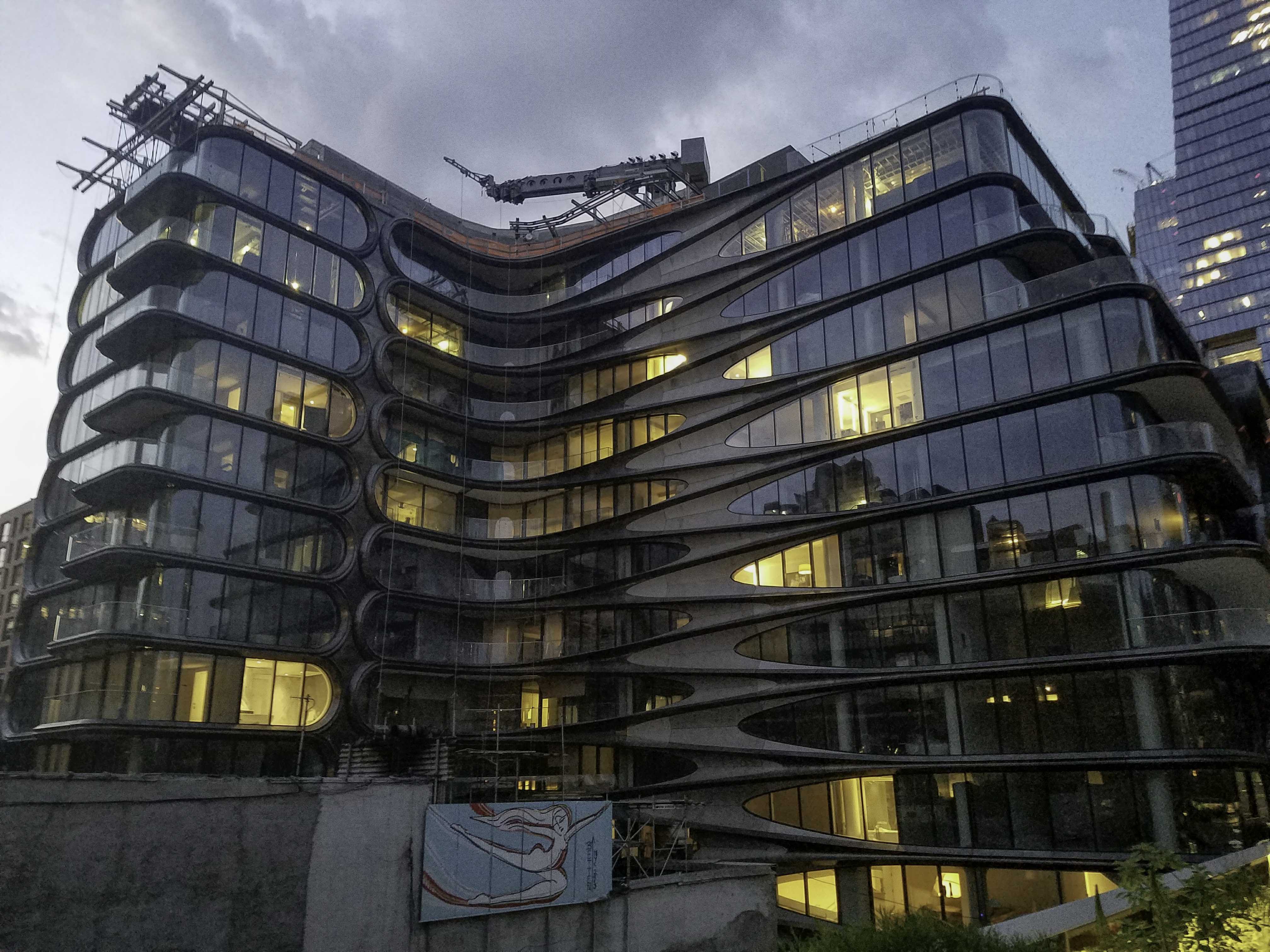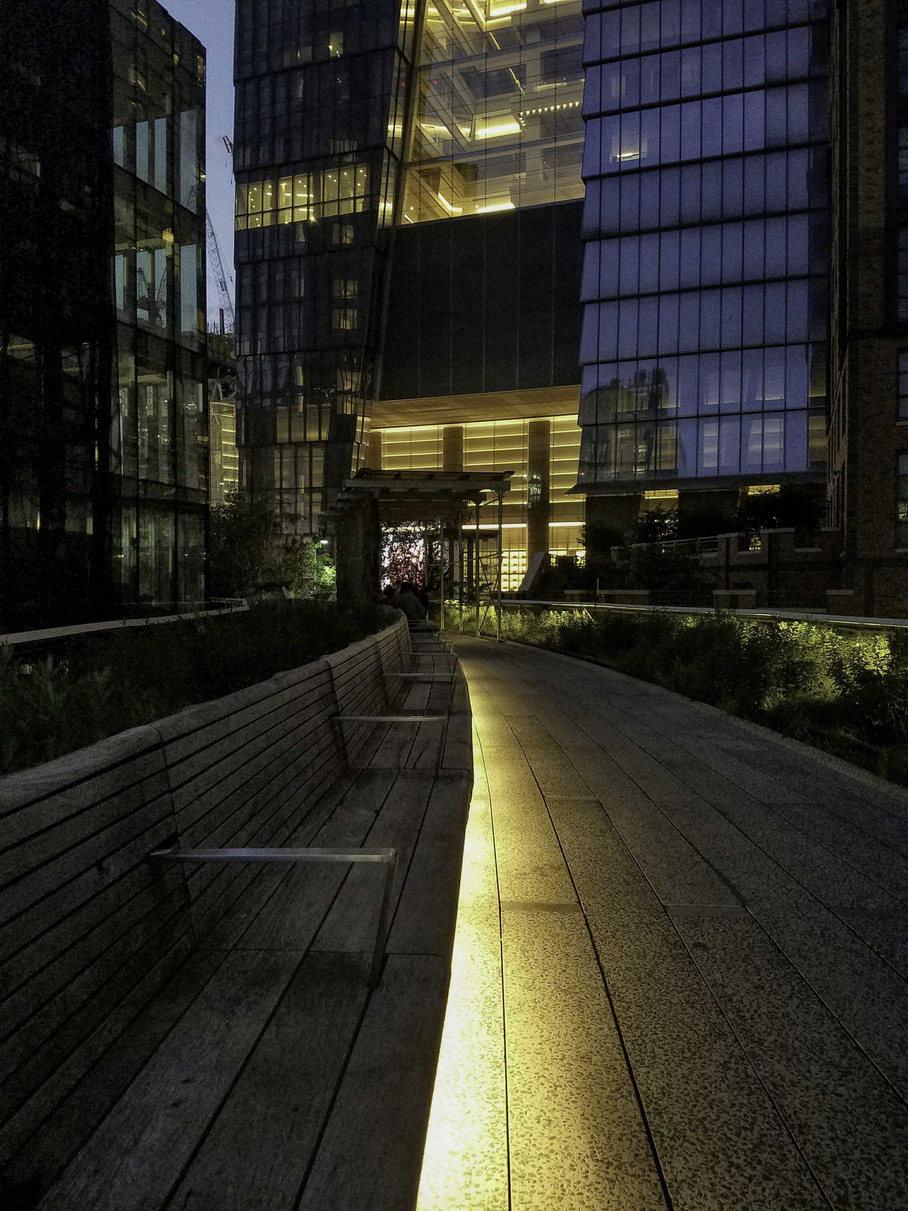 The red brick of Charles Scribner’s Sons building is bathed in a warm blood orange colour.