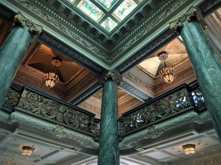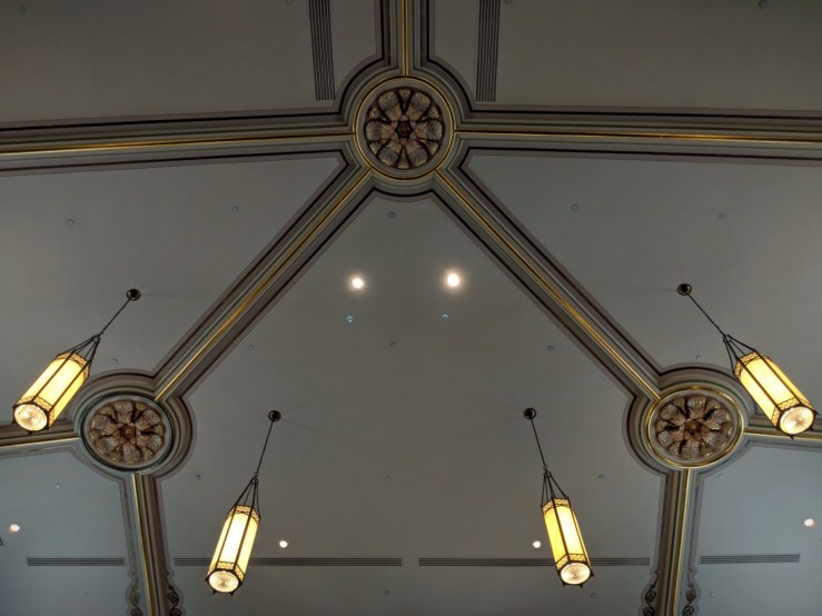 At the Joseph Smith Memorial Building with its ornately decorated lobby and panoramic views of the city and beyond. Inviting and welcoming, like Salt Lake City itself, with a live music performance, it is a grand piece of the city’s history, built in 1911 as The Hotel Utah.