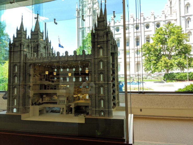 A day-and-a-half in Salt Lake City. Only a short stop, because Yellowstone may be something out of this world, but so are the Salt Flats, adding to the extraordinary natural phenomena we experienced in this part of the globe; a gift that keeps on giving. Our shoes and backpacks still white with salt, we set out to explore the city; starting, as you do, with the Temple Square and the Tabernacle for the daily 12 o’clock, 11.623 pipe organ recital, which is free and open to the public. Followed by views from the Assembly Hall, initially a place of worship, today a space mainly for recitals, lectures and tours. And a first glimpse of the Temple, the most sacred building in the city.