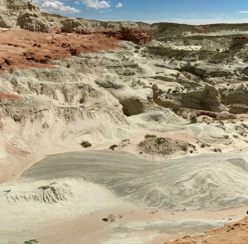 Much as it is easy to believe that they were placed here by magic, the Paria Rimrocks – Toadstool Hoodoos to friends – are formed when Dakota Sandstone boulders perch atop pedestals of softer Entrada Sandstone. As the Entrada erodes away, the harder Dakota forms a cap, and creates these unique formations.