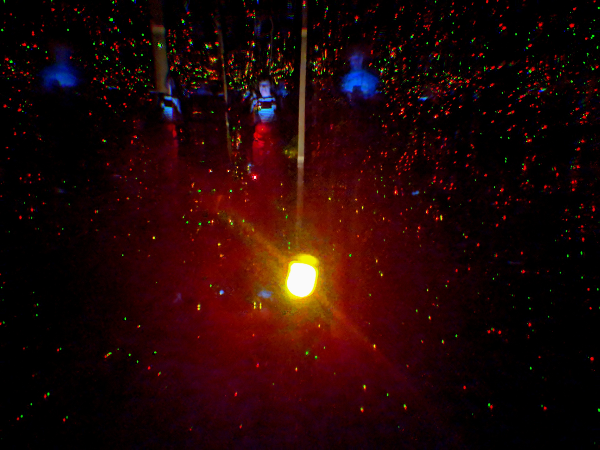 Stretching to infinity with the help of two mirrors – one on the ceiling, another on the floor – and colour changing LED lights. I’m not sure about the ”heaven” part, the effect is more like ”as above so below”, with worshippers debating on which direction is better to take.