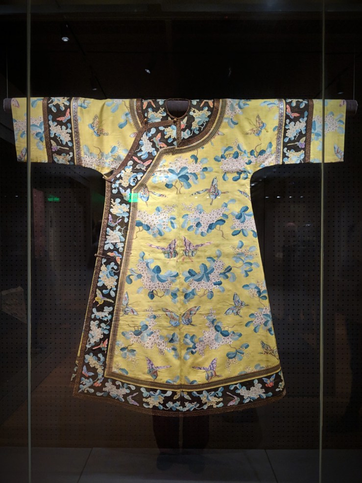 Silk tapestry weave (kesi) with handpainted decoration and applied compound-weave ribbon